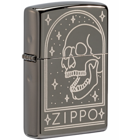 Zippo Skelet PF 49719 na granici je šaljivog i mračnog. Ovaj crni model vešto ispoliranog Zippo upaljača privlači pažnju prikazom na svojim širim stranicama. Tu je u svetlijoj boji prikazana lobanja sa otvorenom vilicom, dok su oko nje sitne zvezde i tačkice, a ispod nekarakterističan natpis ,,ZIPPO”. Crno kućište predstavlja kombinaciju mesinga i čelika, sa poznatim Zippo Black Ice završnim premazom.