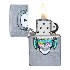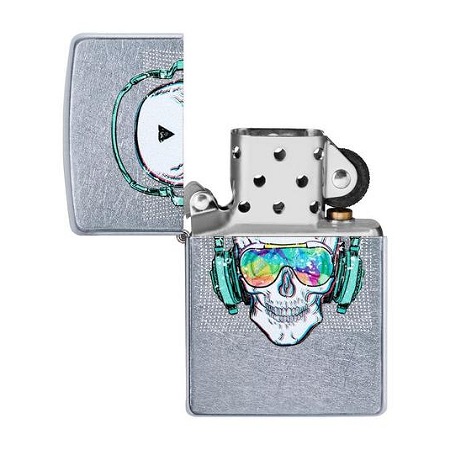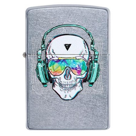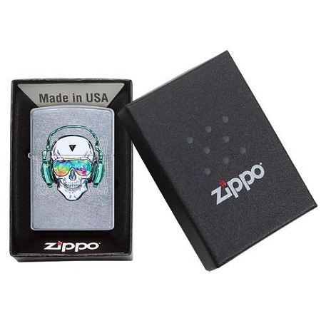 Pratite svoj sopstveni ritam i stil uz Zippo Skull Headphone Designe 29855! Ovaj Street Chrome upaljač od Zippo- a nikoga neće ostaviti ravnodušnim. Karakteristična obrada hroma dopunjena je zanimljivim prikazom lobanje sa slušalicama, i sunčanim naočarima u kojima se ogledaju sve boje.