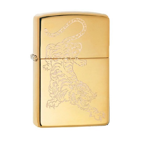 Moćni prikaz tigra našao se na prednjoj strani čuvenog Zippo upaljača, modela Zippo Tiger Design 29884. Površina je u boji zlata, od mesinga, uglačana do perfekcije. Tigar je ugraviran specijalnom tehnikom, tako detaljno da deluje kao da lebdi iznad površine upaljača, koja je kao ogledalo.