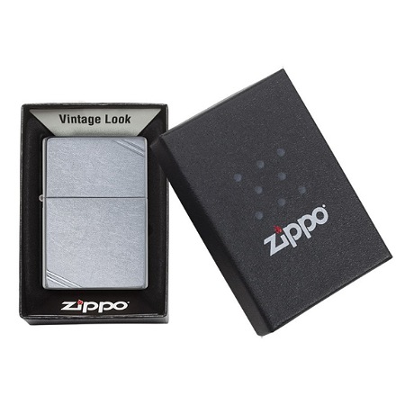 Zippo upaljač doživeo je puno varijacija, ali jedan od omiljenih modela ostaje ovaj vintidž, sa delikatnim ukrasima u uglovima. Ukrase čine dve tanke kose crte, plitko urezane u metalnu površinu upaljača. Kućište zahvaljujući specijalnoj tehnici obrade metala deluje kao da je izgrebano, te zbog toga ovaj model izgleda kao da je puno toga preživeo. On će tek da priča priče sa ponosnim vlasnikom. Poklonite istinskim zaljubljenicima u Zippo brend, ili onima koji će to tek da postanu!